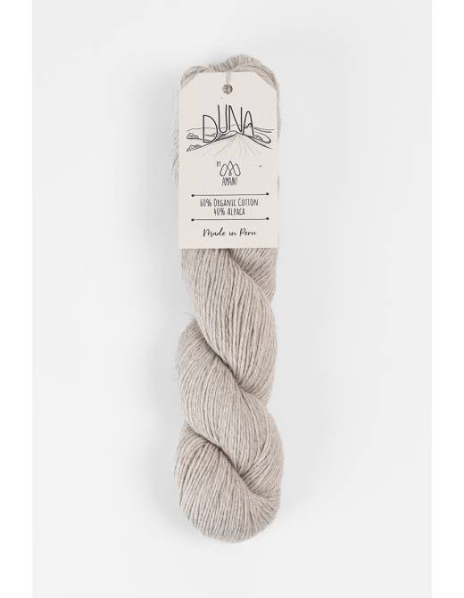 The subtly tinted organic cotton and alpaca base enhances its appeal while preserving the yarn's eco-friendly properties. Perfect for eco-conscious projects, Duna inspires garments and accessories that embody the organic essence of Peru's coastal dunes, adding natural beauty to every creation.