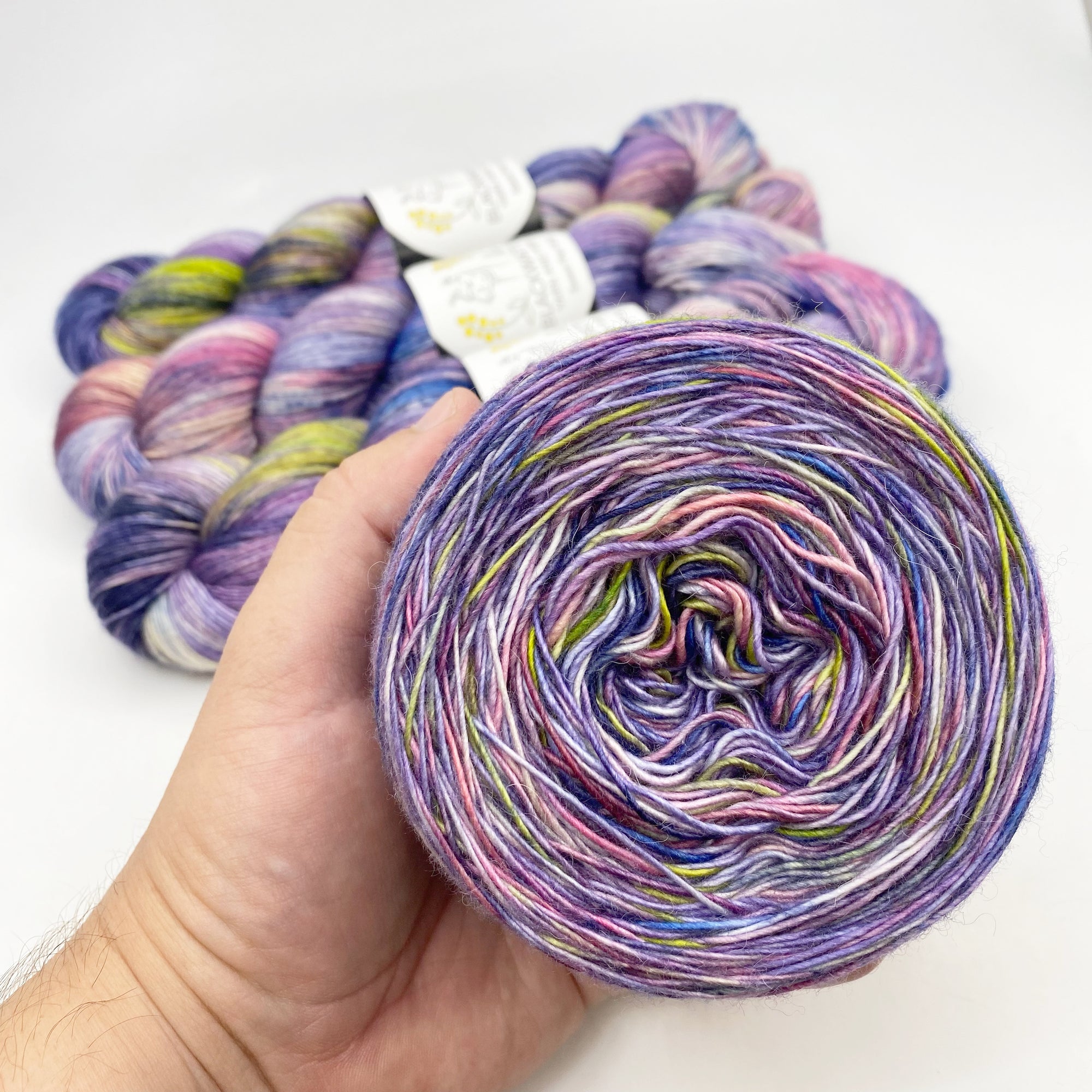 Almost all Blackwattle yarns are sold as skeins or hanks. We hand dye our products in skeins/hanks to achieve an optimum result and we display them in this same relaxed format to avoid stretching or over tensioning the yarn while they are waiting to be used in a project.