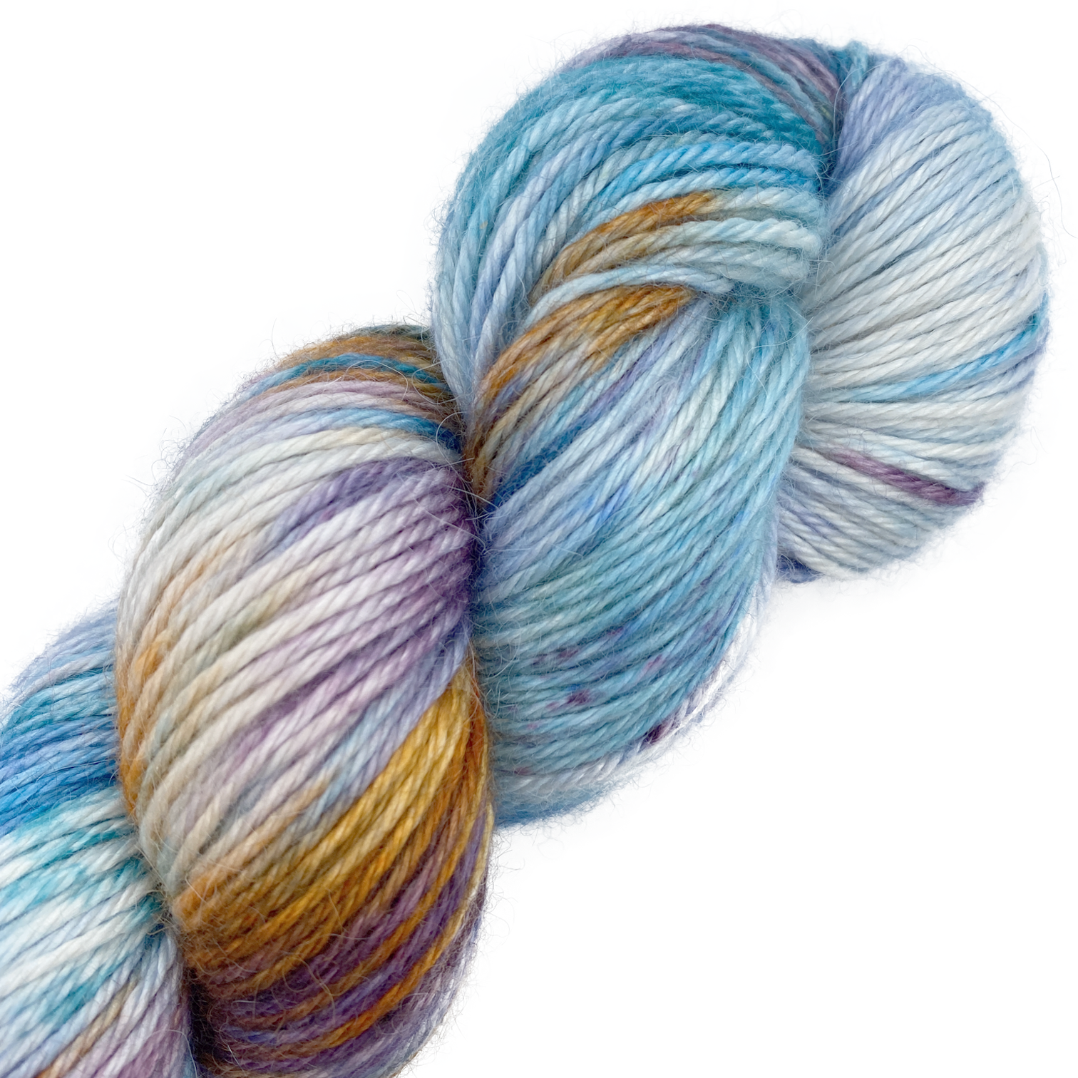 Fibre: A blend of 55% superwash Blue Faced Leicester and 45% silk.