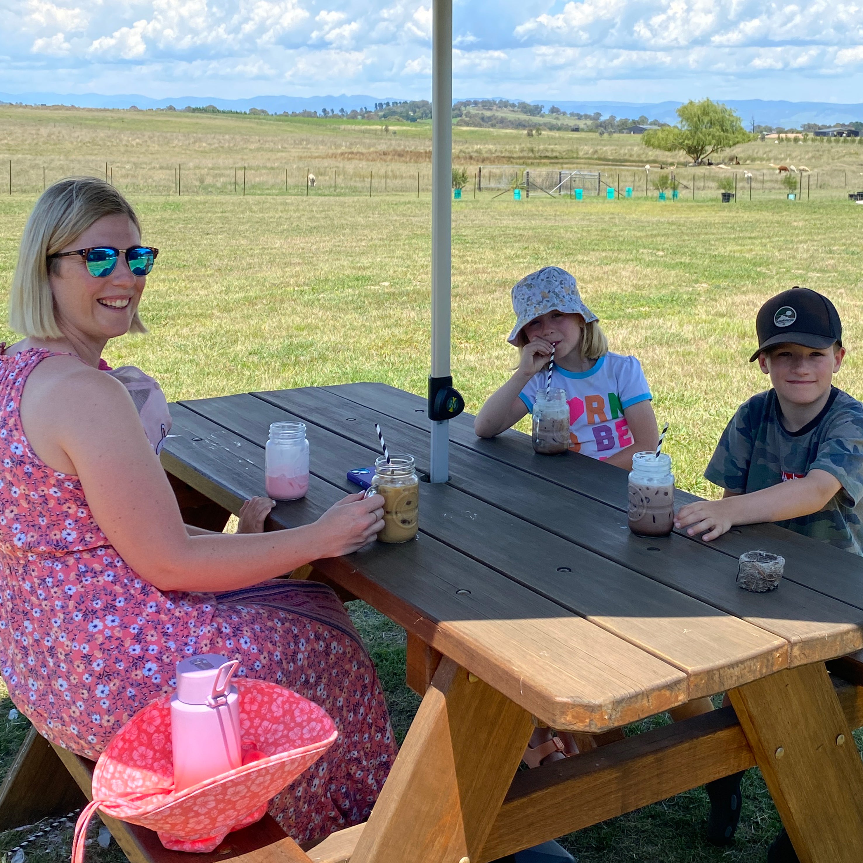 Our carpark includes flat concrete paths from the concreted wheelchair accessible car space, around to the front of our farm shop and undercover entertaining patio area.